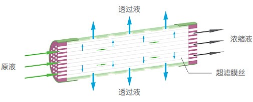 采用内压式超滤,正、反冲洗时到达膜外表面流量高;