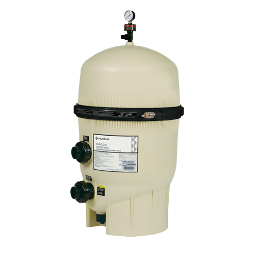 清澈水质,轻松获得!Quad D.E. 过滤器结合了可以实现晶莹透澈水质的最精细过滤技术 和通常只有滤芯过滤器才具备的方便、易清洁特性。四个硅藻土滤芯检修拆卸方便,简化 维护并节省时间。